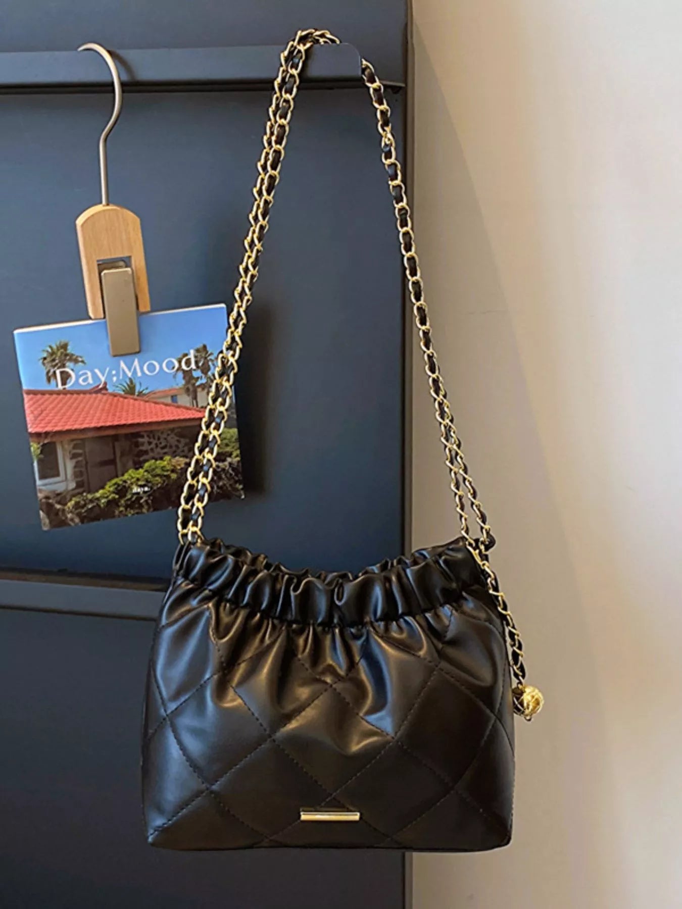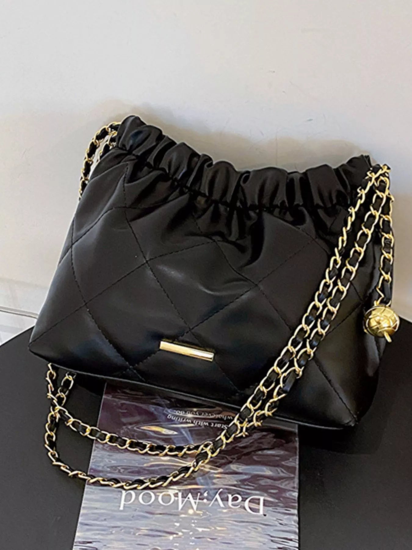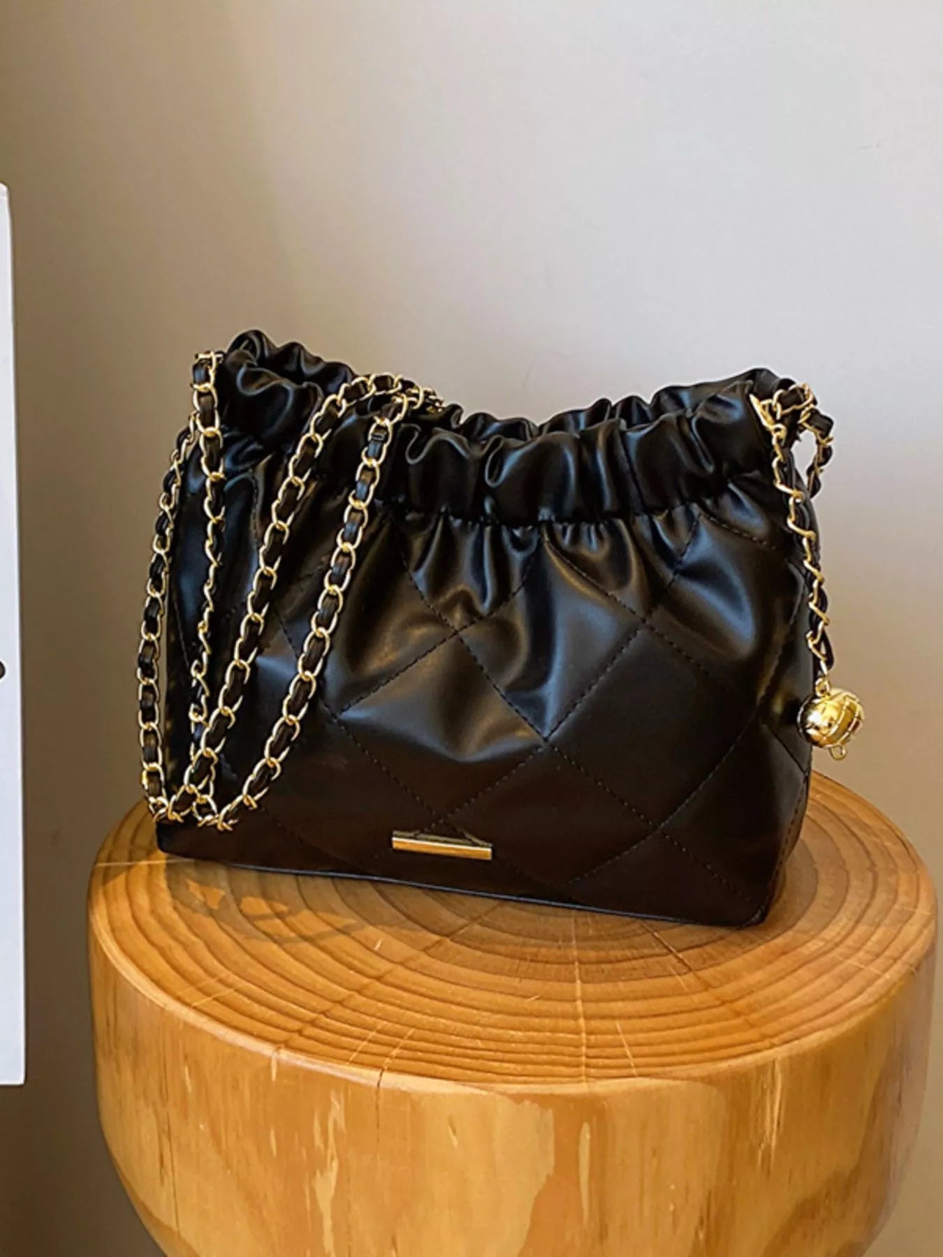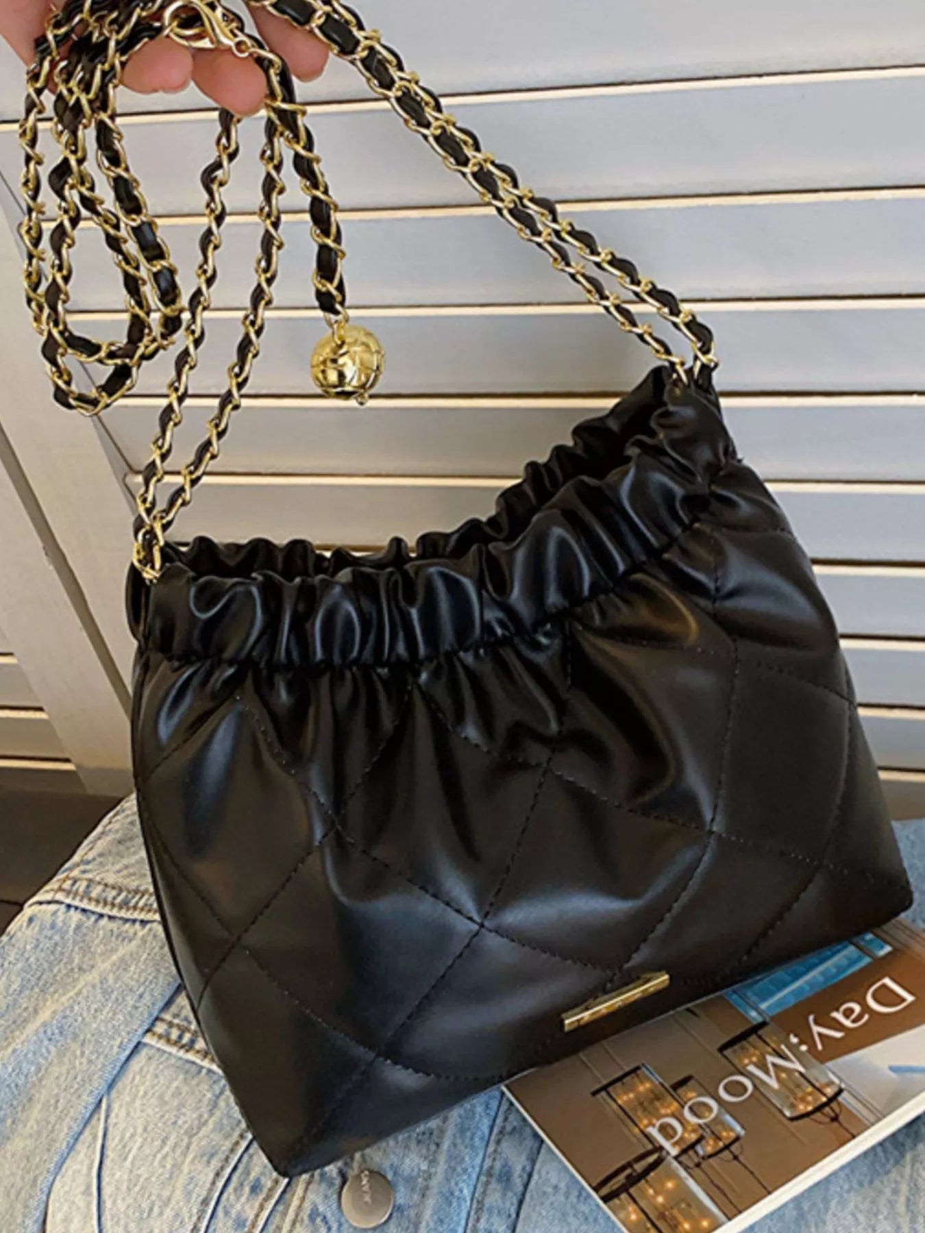 Quilted Ruched Chain Shoulder Bag