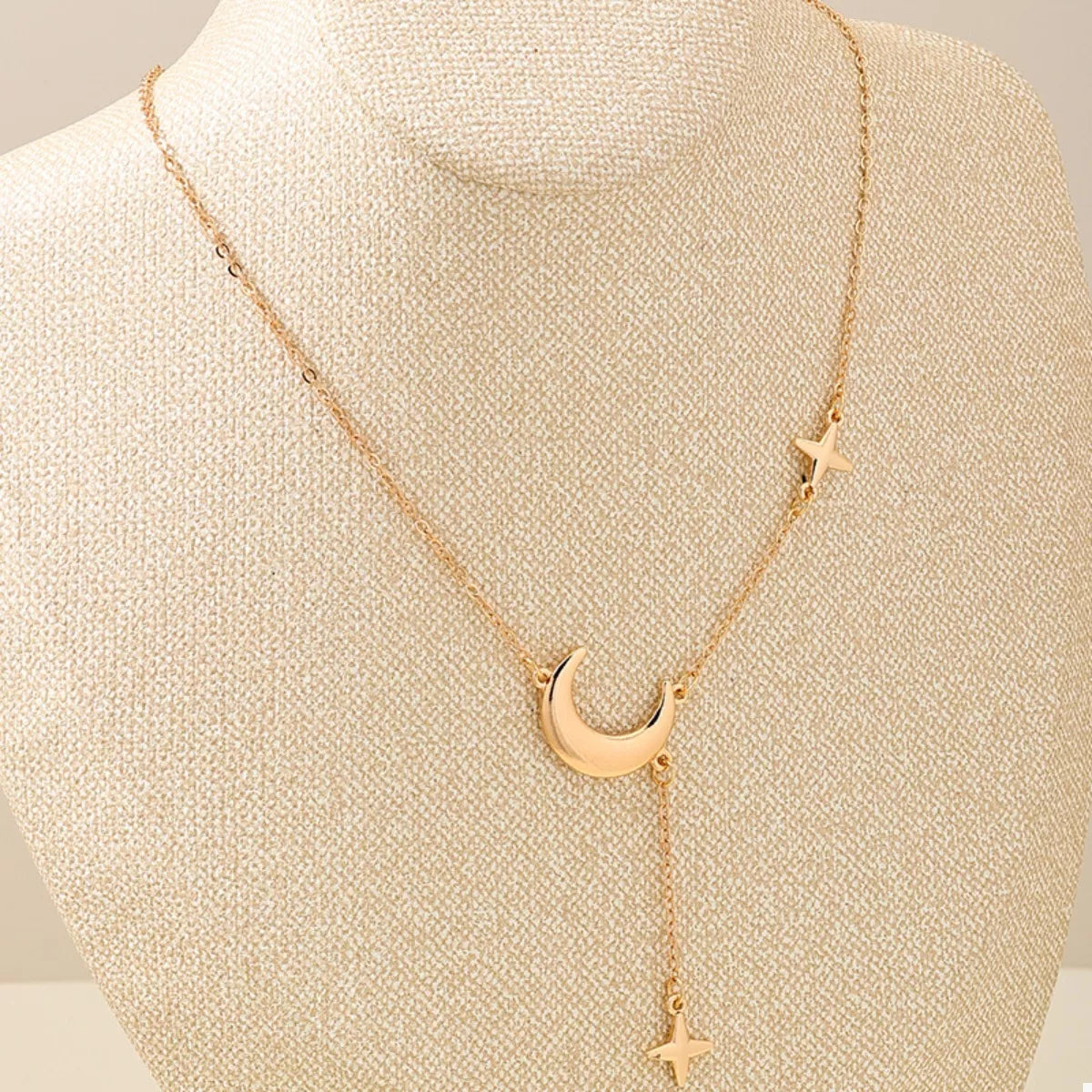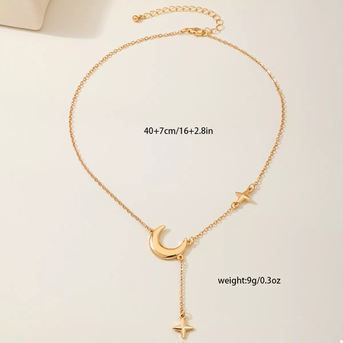 18K Gold-Plated Moon and Star Gold Chain Necklace