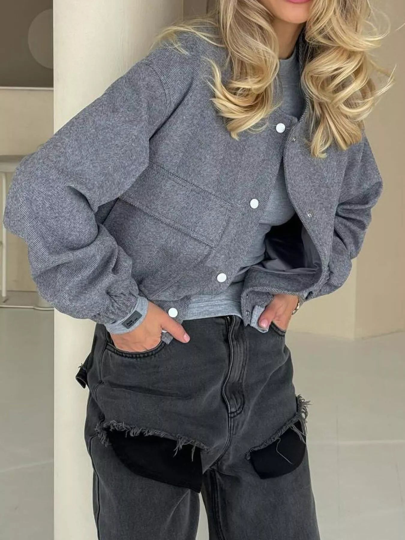Casual Cropped Snap-Down Jacket