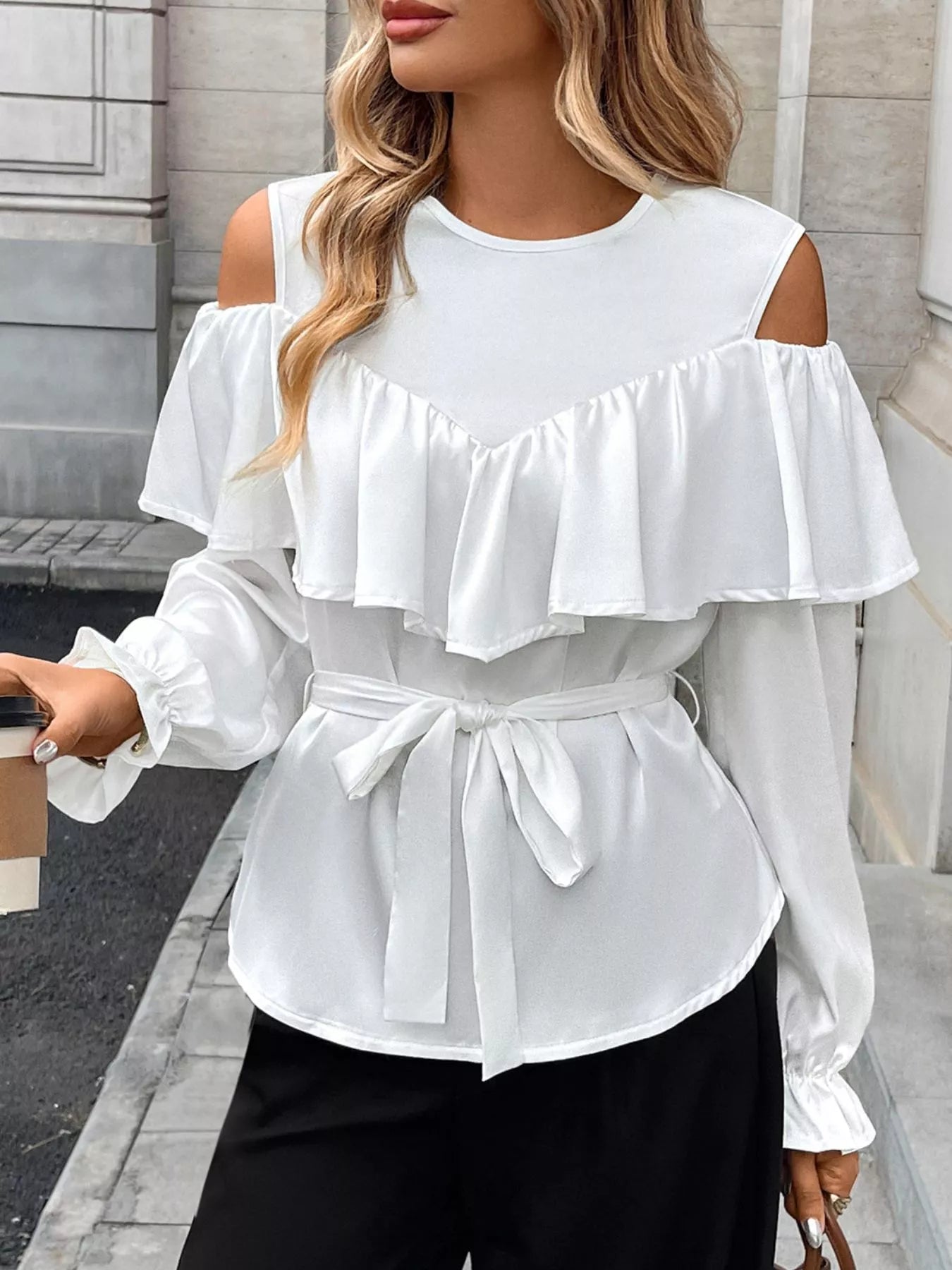 Regular price $31.03Ruffled Cold Shoulder Flounce Sleeve Blouse